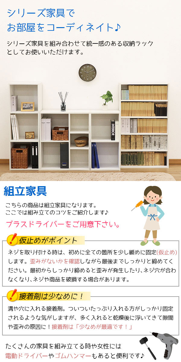 シリーズ家具を組み合わせて統一感のある収納ラックとしてお使いいただけます。