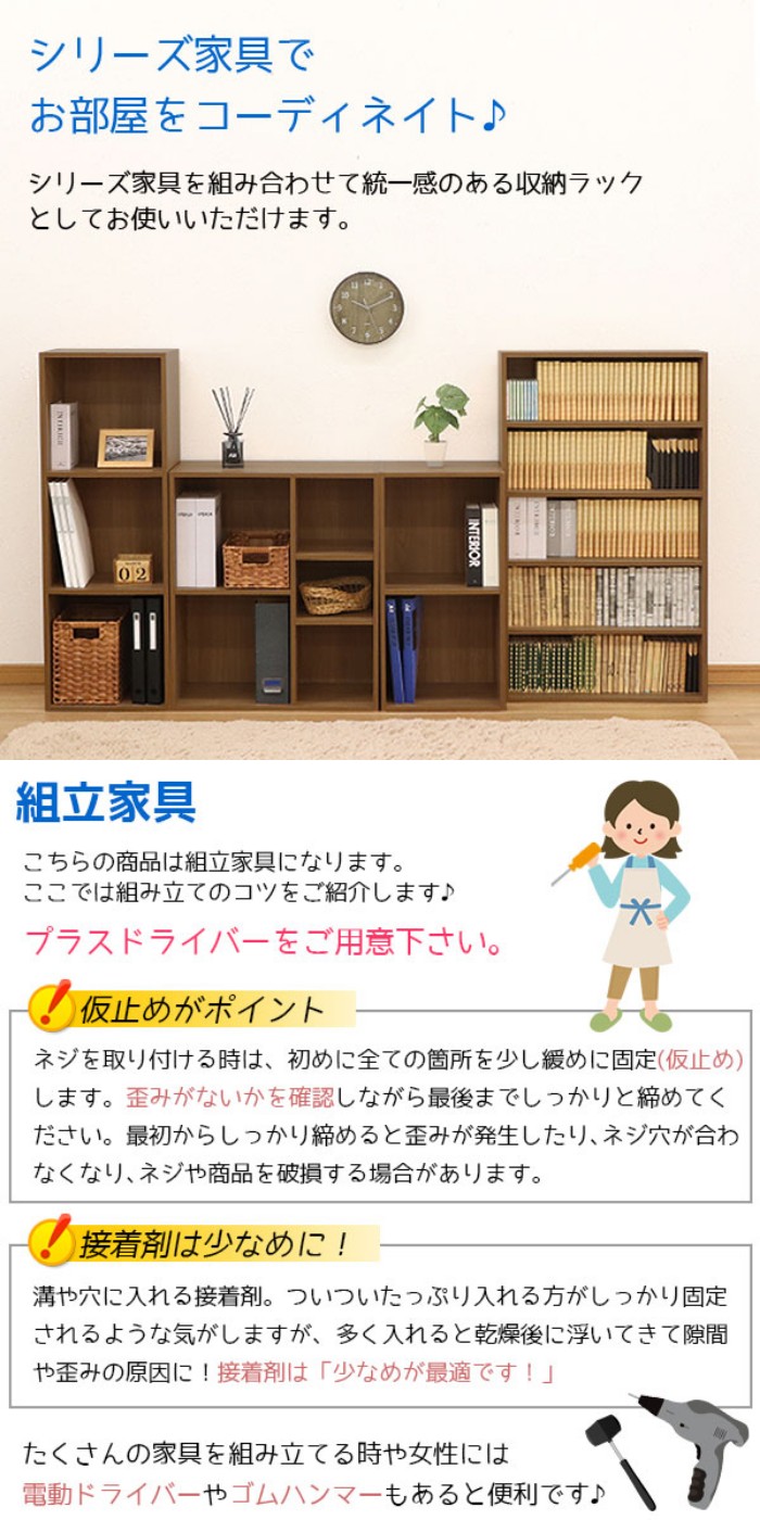 シリーズ家具を組み合わせて統一感のある収納ラックとしてお使いいただけます。