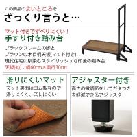 自然な木目柄の天板とブラックフレームの脚と手すりでスタイリッシュな印象の踏み台