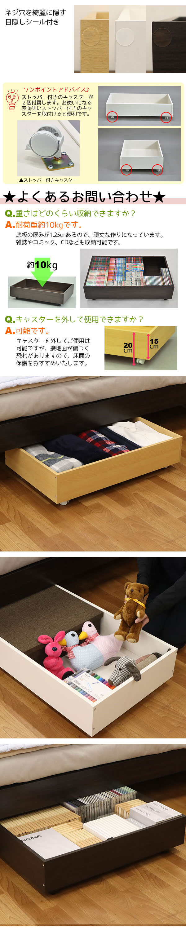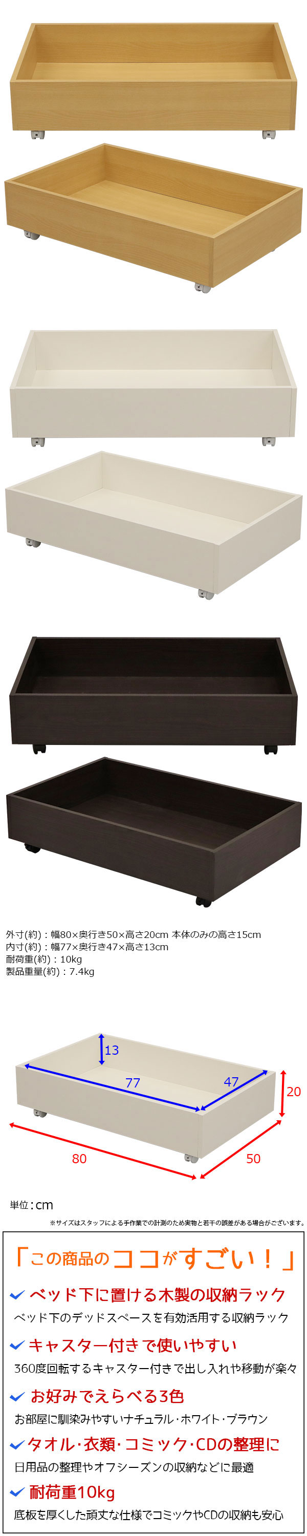 | 商品名: ベッド下収納 キャスター付き (単品)木製ベッド下 収納ボックス(ベッド下収納ボックス ベッド下 収納ラック ベッド下 収納ケース ベッド下 引き出し収納)幅80cm 奥行50cm 高さ20cm シンプルでおしゃれ すきま収納(隙間収納 すき間収納 ブラウン ホワイト ナチュラル 商品種別: ベッド下 収納ボックス(収納BOX)、ベッド下収納ラック、木箱、収納箱、道具入れ、道具箱、おもちゃ箱、すきま収納(すき間収納、隙間収納)、タオル収納、DVD収納、コミック収納、カラーボックス(カラーBOX)キャスター付き、キャスター付き カラーボックス |