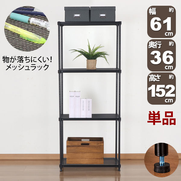 商品名:物が落ちにくい スチールラック 4段 (約)幅60cm 奥行35cm 高さ152cm メッシュ棚板 収納棚 スリム メッシュラック ブラック 黒 おしゃれ 頑丈 棚板耐荷重20kg オープンラック 隙間収納 キッチンラック ガレージ 高さが変えられる棚 アジャスター付き 1個単品 EPR-6015 家具 インテリア 収納家具 棚 収納ラック メッシュ 棚 網目 高さ調整 四段ラック マルチラック フリーラック 多目的ラック 整理棚 オープン棚 オープンシェルフ スチールシェルフ 物が倒れにくい スリムラック キッチン収納棚 レンジ台 レンジラック 家電収納 キッチンストッカー リビング収納 玄関ラック 玄関収納 ランドリーラック 洗剤収納 洗剤 ストック プリンターラック プリンター台 本棚 ディスプレイラック