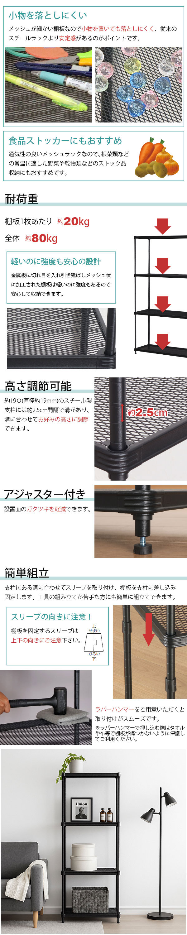 物が落ちにくい! メッシュラック の説明