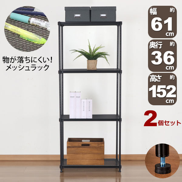 商品名:2個セット 物が落ちにくい スチールラック 4段 (約)幅60cm 奥行35cm 高さ152cm メッシュ棚板 収納棚 スリム メッシュラック ブラック 黒 おしゃれ 頑丈 棚板耐荷重20kg オープンラック 隙間収納 キッチンラック ガレージ 高さが変えられる棚 アジャスター付き EPR-6015 家具 インテリア 収納家具 棚 収納ラック メッシュ 棚 網目 高さ調整 四段ラック マルチラック フリーラック 多目的ラック 整理棚 オープン棚 オープンシェルフ スチールシェルフ 物が倒れにくい スリムラック キッチン収納棚 レンジ台 レンジラック 家電収納 キッチンストッカー リビング収納 玄関ラック 玄関収納 ランドリーラック 洗剤収納 洗剤 ストック プリンターラック プリンター台 本棚 ディスプレイラック