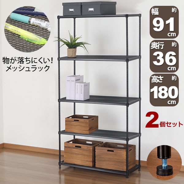 商品名:2個セット 物が落ちにくい スチールラック 5段 (約)幅90cm 奥行35cm 高さ180cm メッシュ棚板 収納棚 スリム メッシュラック ブラック 黒 おしゃれ 頑丈 棚板耐荷重20kg オープンラック 隙間収納 キッチンラック ガレージ 高さが変えられる棚 アジャスター付き EPR-9018 家具 インテリア 収納家具 棚 収納ラック メッシュ 棚 網目 高さ調整 五段ラック マルチラック フリーラック 多目的ラック 整理棚 オープン棚 オープンシェルフ スチールシェルフ 物が倒れにくい スリムラック キッチン収納棚 レンジ台 レンジラック 家電収納 キッチンストッカー リビング収納 玄関ラック 玄関収納 ランドリーラック 洗剤収納 洗剤 ストック プリンターラック