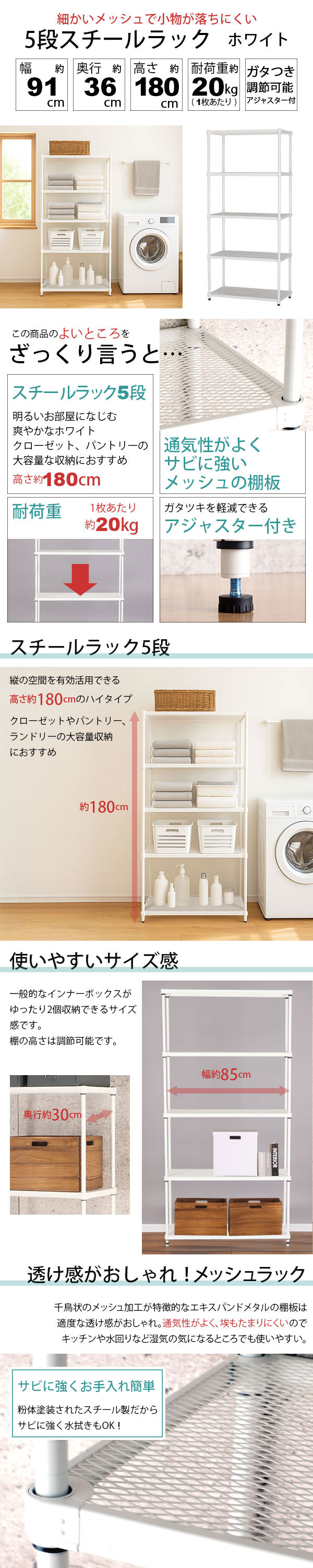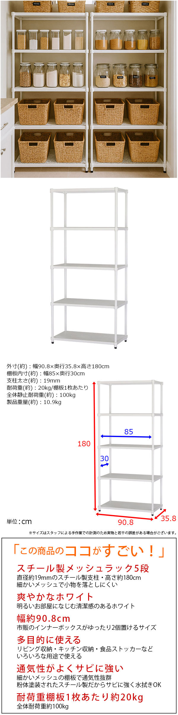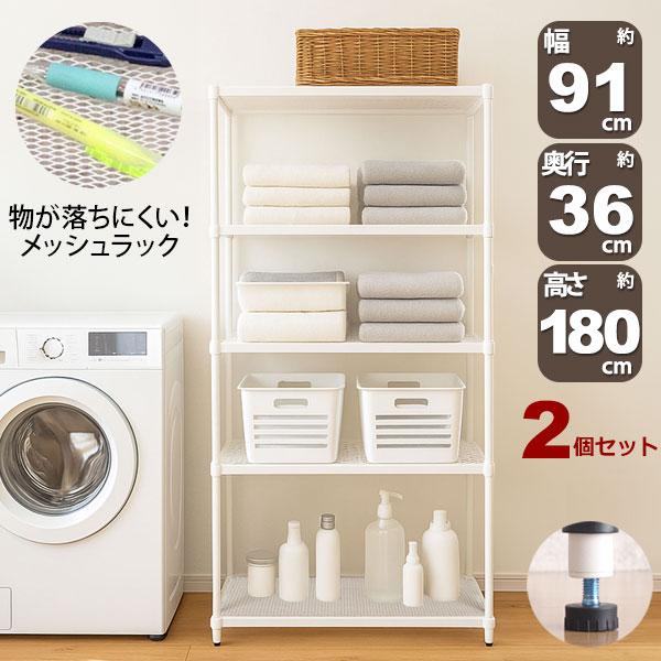 商品名:2個セット 物が落ちにくい スチールラック 5段 (約)幅90cm 奥行35cm 高さ180cm メッシュ棚板 収納棚 スリム メッシュラック ホワイト 白 おしゃれ 頑丈 棚板耐荷重20kg オープンラック 隙間収納 キッチンラック ランドリー収納 高さが変えられる棚 アジャスター付き EPR-9018 家具 インテリア 収納家具 棚 収納ラック メッシュ 棚 網目 高さ調整 五段ラック マルチラック フリーラック 多目的ラック 整理棚 オープン棚 オープンシェルフ スチールシェルフ 物が倒れにくい スリムラック キッチン収納棚 レンジ台 レンジラック 家電収納 キッチンストッカー リビング収納 玄関ラック 玄関収納 ランドリーラック 洗剤収納 洗剤 ストック プリンターラック プリンター台 本棚