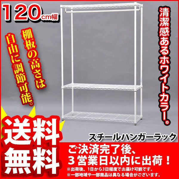 | 商品名: 『(S)ホワイトスチールハンガーラック幅120cm』(HR-W1200)幅120cm 奥行き45cm 高さ180cm 送料無料 高さ調節可能な白色のスチールラック衣類収納 ハンガー掛け 洋服収納 棚 ラック シンプルメタルシェルフ ハンガーラック 組立家具 商品種別: 衣類収納、スチールラックハンがー、スチールハンガーラック、ハンガーシェルフ、メタルシェルフ、衣類収納棚 |