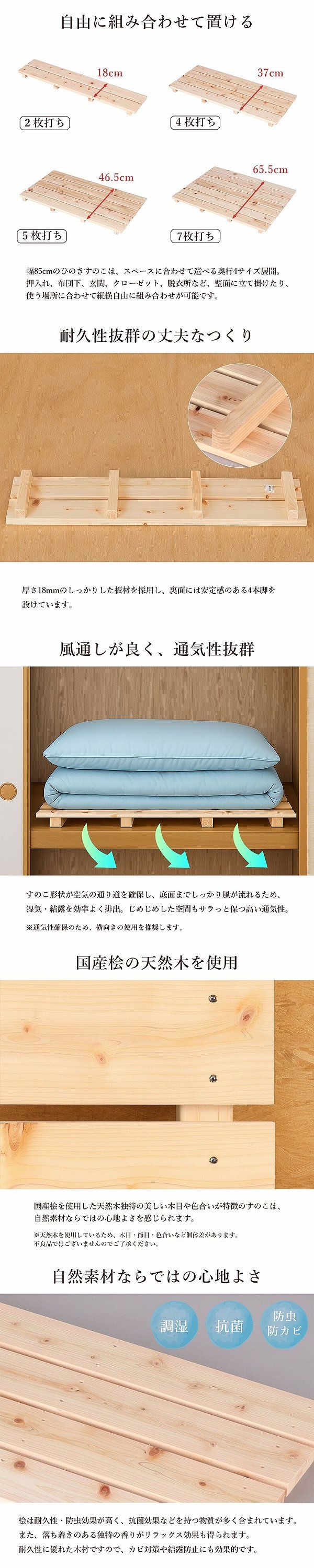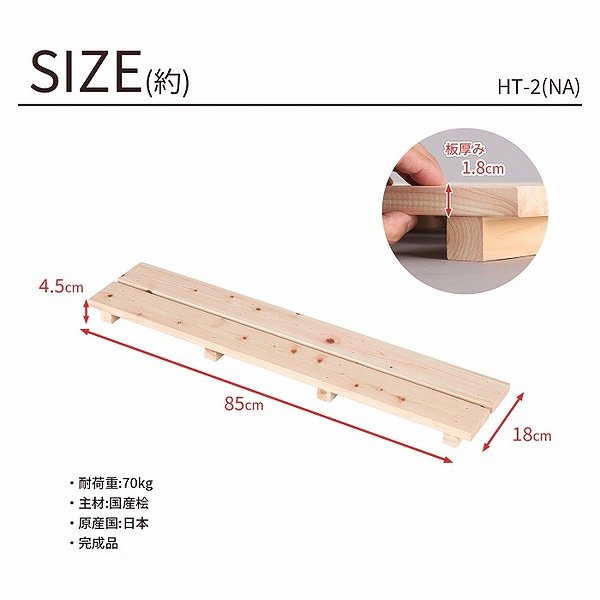 | 国産ひのき すのこ 押し入れすのこ 85×18 日本製 完成品 幅85cm 奥行18cm 高さ4.5cm 天然木 木製 スノコ 台 高さ5cm以下 2枚打ち おしゃれ すのこ板 脱衣所 洗面所 浴室 クローゼット 玄関 ベッド下 湿気対策 防虫 防カビ 軽い 桧 檜 シンプル ナチュラル 1個単品 HT-2 家具 インテリア 収納家具 すのこ 簀の子 押入れ用 押入用 スノコ台 スノコ板 すのこ収納台 押し入れ収納 クローゼット収納 リビング収納 寝室収納 ベッド下収納 クローゼット整理 布団収納 プランタースタンド フラワースタンド 花台 観葉植物 ゴミ箱置き 床置き ソファ下 新生活 一人暮らし ワンルーム リビング 居間 ダイニング キッチン 台所 床下収納 お風呂場 浴室まわり サウナ 寝室 ベッドルーム 子供部屋 玄関 靴箱 下駄箱 ベランダ バルコニー テラス 庭 ガーデン シンプル モダン 梅雨対策 結露対策 カビ防止 カビ対策 風通しがいい 通気性 すべり防止 抗菌 防菌 清潔 衛生的 リラックス 木目 軽量 |