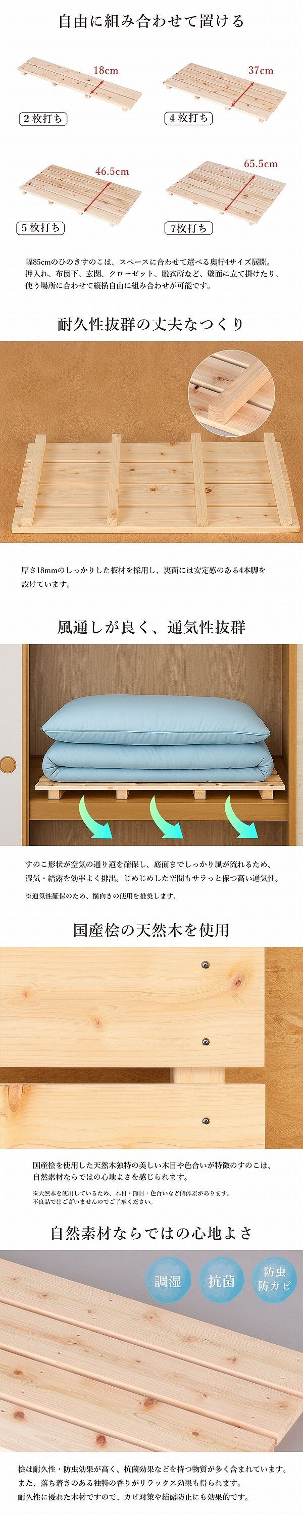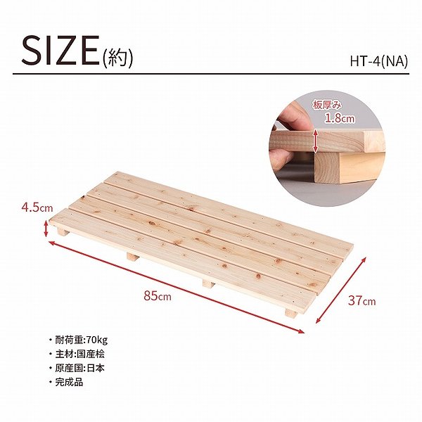 | 国産ひのき すのこ 押し入れすのこ 85×37 日本製 完成品 幅85cm 奥行37cm 高さ4.5cm 天然木 木製 スノコ 台 高さ5cm以下 4枚打ち おしゃれ すのこ板 脱衣所 洗面所 浴室 クローゼット 玄関 ベッド下 湿気対策 防虫 防カビ 軽い 桧 檜 シンプル ナチュラル 1個単品 HT-4 家具 インテリア 収納家具 すのこ ヒノキ 簀の子 押入れ用 押入用 スノコ台 スノコ板 すのこ収納台 押し入れ収納 クローゼット収納 リビング収納 寝室収納 ベッド下収納 クローゼット整理 布団収納 プランタースタンド フラワースタンド 花台 観葉植物 ゴミ箱置き 床置き ソファ下 新生活 一人暮らし ワンルーム リビング 居間 ダイニング キッチン 台所 床下収納 お風呂場 浴室まわり サウナ 寝室 ベッドルーム 子供部屋 玄関 靴箱 下駄箱 ベランダ バルコニー テラス 庭 ガーデン シンプル モダン 梅雨対策 結露対策 カビ防止 カビ対策 風通しがいい 通気性 すべり防止 抗菌 防菌 清潔 衛生的 リラックス 木目 軽量 |