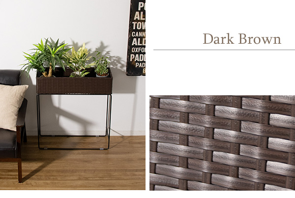 ポリエチレン製の人工ラタンは丈夫で水を弾くので玄関先などでもご使用になれます。