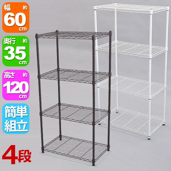 | スチールラック4段(高さ120cm)は、幅60cm 奥行き35cm 高さ119.4cmの多目的ラックです。 |