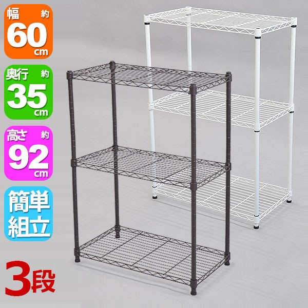 | スチールラック3段(高さ90cm)は、幅60cm 奥行き35cm 高さ91.8cmの多目的ラックです。 |