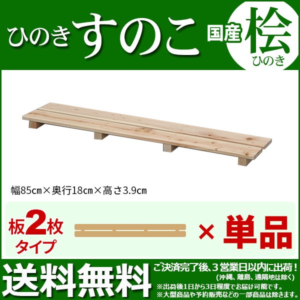 | 商品名: ひのき すのこ『国産桧すのこ 板2枚』(単品) 幅85cm 奥行き18cm 高さ3.9cm 日本製ひのきスノコ ヒノキスノコ 檜簀子 簀の子 シンプル 天然木 すのこ板(スノコ板) 脱衣所 洗面所 押し入れ キッチン シンク下 湿気対策 梅雨対策 防虫 防カビ ナチュラル 完成品(NHS-002) 商品種別: 送料無料の家具通販 インテリア通販>収納家具 通販>押入れ収納(押し入れ収納)、寝室収納、子ども部屋収納、和室・洋室収納、一人暮らし>すのこ板(スノコ板)>木製、天然木、ひのき(ヒノキ、桧、檜)>完成品 |