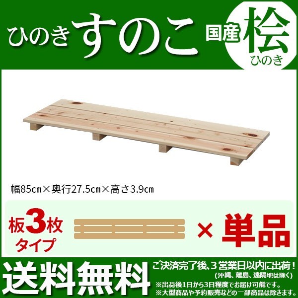 | 国産桧すのこ 板3枚は、天然木の国産ひのきを使ったすのこです。 |