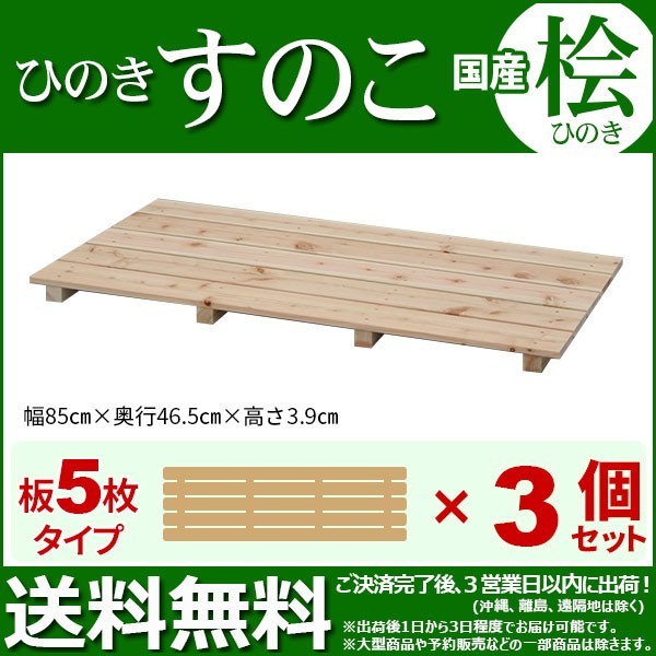 | 商品名: ひのき すのこ『国産桧すのこ 板5枚』(3個セット) 幅85cm 奥行き46.5cm 高さ3.9cm 日本製ひのきスノコ ヒノキスノコ 檜簀子 簀の子 シンプル 天然木 すのこ板(スノコ板) 脱衣所 洗面所 押し入れ キッチン シンク下 湿気対策 梅雨対策 防虫 防カビ ナチュラル 完成品(NHS-005) 商品種別: 送料無料の家具通販 インテリア通販>収納家具 通販>押入れ収納(押し入れ収納)、寝室収納、子ども部屋収納、和室・洋室収納、一人暮らし>すのこ板(スノコ板)>木製、天然木、ひのき(ヒノキ、桧、檜)>完成品 |