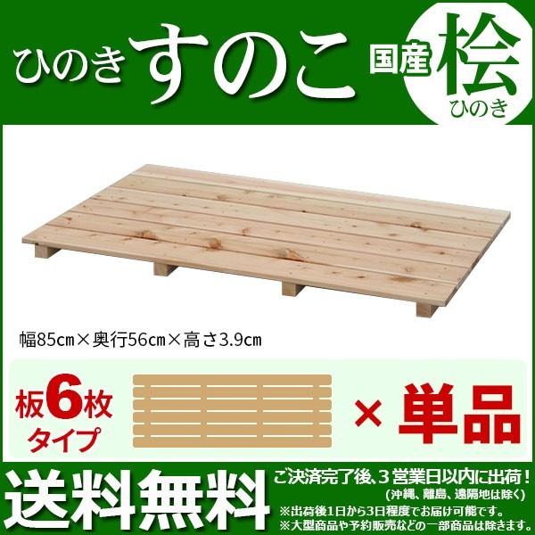 | 国産桧すのこ 板6枚は、天然木の国産ひのきを使ったすのこです。 |