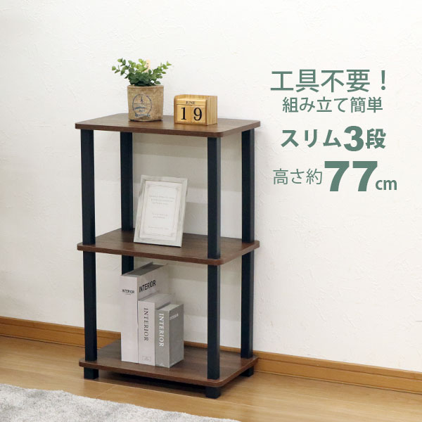 収納ラック 3段 オープンラック3段 スリム 工具不要 簡単組立 幅47.2cm 奥行30cm(29.7cm) 高さ76.9cm おしゃれ 棚 キッチンラック 調味料 サニタリーラック トイレ収納 ランドリー 洗面所 脱衣所 玄関 電話台 A4対応 飾り棚 シンプル 軽い 軽量 隙間収納 すき間収納 ブラウン