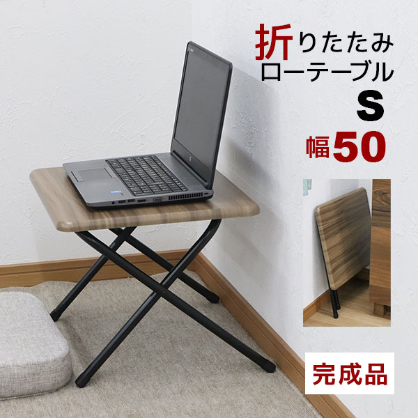 | ちょっとした作業やデスクワークなど様々なシーンで活躍できます。 折畳時の厚さは、約4.5cmとスリムでコンパクト。使わない時は、隙間に収納が可能。 テーブルは約3.7kgと軽量なので、持ち運びが楽々。 耐荷重は天板約30kg。PCやミシンなどを置いて作業するのに最適です。 木目調天板×アイアンの組合せがヴィンテージスタイルを演出。 天板角に丸みを持たせた作りの為、お子様にも安心。 テーブルの脚先には床キズ対策用のキャップ付き。 折りたたみローテーブルS 幅50 完成品 使わない時は折り畳んで隙間に収納! 折り畳みローテーブル S 完成品/(約)幅50cm 奥行43cm 高さ35cm 耐荷重30kg この商品のよいところをざっくり言うと… 折りたためる!ローテーブル 必要な時だけサッと出してすぐに使える便利な作業台 天板サイズ:約幅50cm ×奥行40cm 隙間に収納できる 折りたたみ時の厚み約4.5cm 軽くて持ち運び楽々!約3.7kg 軽くて折りたたみ可能なので女性でも簡単に持ち運んで使える♪ 使わない時は折りたたんでスッキリ収納 お部屋の片隅に置いて リビング/書斎/寝室 コンパクトサイズなのでお部屋に置いても省スペース! テレワークやお子様のリビング学習にも便利なミニテーブル。 一人暮らしにも使いやすいサイズです。 他にも・・・ ディスプレイ 展示、記帳台など 軽量&コンパクトなので手軽に持ち運んでどこでも使える。 キッズデスク 小さいお子様のお絵かき、工作などにちょうど良いサイズ。 お客様からの声より ミシン、ネイル などの作業台としてご利用いただき大変便利と好評です♪ 折りたたみ時厚み 約4.5cm 折り畳み時サイズ(約):幅50cm×高さ54cm×厚み4.5cm コンパクトに折りたためるので使わない時はちょっとした隙間に収納できてとっても便利です! 女性にも嬉しい軽さ!約3.7kg 女性でも簡単に持ち運んで気軽につかえます。 倒れにくい設計 片方の脚を長くすることで安定し、コンパクトでも倒れにくい設計になっています。 耐荷重 約30kg スリムな脚ながらしっかりした耐荷重で安心してお使いいただけます。 キズ防止キャップ付き キャップ付きなのでフローリングや畳をキズつけにくくなっています。 くすみブラウンの天板 天板サイズ(約):幅50cm×奥行40cm 落ち着いたくすみブラウンの天板とブラックの脚でスタイリッシュ! 角が丸いやさしい設計 角丸加工でぶつかっても怪我をしにくい設計です。 お子様がいるご家庭でも安心してお使いいただけます。 外寸(約):幅50×奥行43×高さ35cm 天板(約):幅50×奥行40cm 折り畳み時(約):幅50×高さ54×厚み4.5cm 耐荷重(約):30kg 製品重量(約):3.7kg 梱包重量(約):3.9kg 主材:天板 MDF(PVC)、脚 スチール(粉体塗装) 「この商品のココがすごい!」 折りたためるミニローテーブルS 天板サイズ(約):幅50cm×奥行40cm 使わないときは隙間に収納できる 折りたたみ時厚み(約):4.5cm テレワーク・キッズデスク お部屋の隅に置いてテレワークやお子様のお絵かきにも便利なミニテーブル。一人暮らしにもおすすめ! 女性にも嬉しい重さ約3.7kg 軽いので出し入れ、持ち運びしやすく使いやすい 耐荷重約30kg しっかりした耐荷重で安心して使える。 |