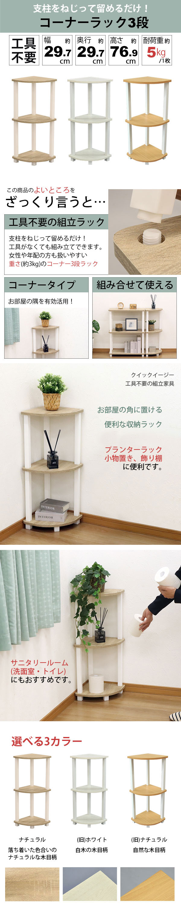 | 商品名: 収納ラック コーナーラック 3段 工具不要 簡単組立 3段ラック 3段コーナー用収納 幅30cm(29.7cm) 奥行30cm(29.7cm) 高さ76.9cm おしゃれ コーナー 棚 サニタリーラック トイレ収納 ランドリー 洗面所 脱衣所 電話台 A4対応 シンプル 軽い 軽量 ナチュラル NQ-CN3 QSVP-CN2 商品種別: 家具通販 インテリア通販>収納家具 通販>棚、ラック、シェルフ>リビング(居間)、キッチン(台所)、洗面所(脱衣所)、トイレ(サニタリー)、子ども部屋(こども部屋、子供部屋)、一人暮らし>コーナーラック(コーナー収納ラック)>シンプル、スリム>簡易組立 コーナー3段 収納ラック3段コーナー オープンラック クイックイージー プランターラック 小物置き 飾り棚 すき間収納 隙間収納 スリム お洒落 かわいい 可愛い ストッカー キッチン リビング 子供部屋 子ども部屋 寝室 和室 洋室 玄関 |