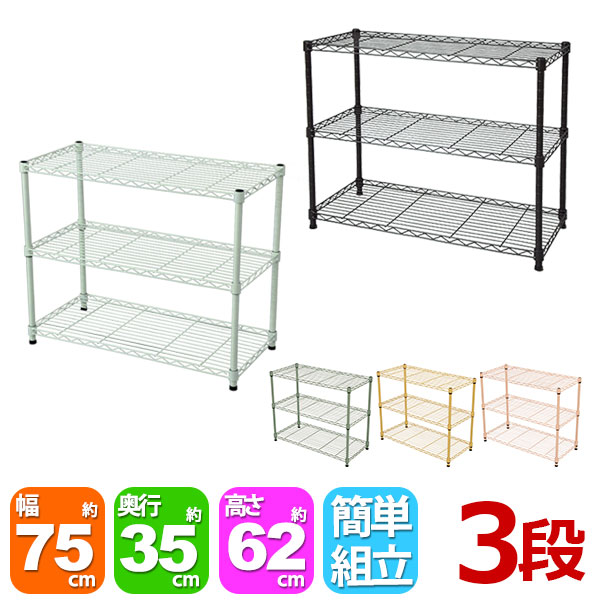 スチールラック3段 幅75cm 奥行35cm 高さ61.8cm (奥行35cm)リビング収納 おもちゃ収納 玄関収納 押し入れ収納 すきま収納 多目的ラック フリーラック シンプル おしゃれ かわいい ホワイト ブラウン 可動棚板 移動棚板 アジャスター付き 簡単組立(NS-7535)