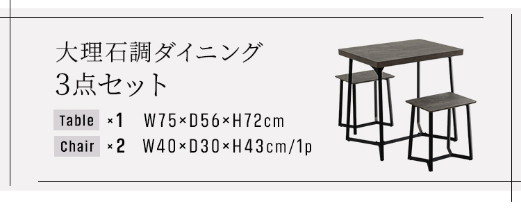 スタイリッシュなブラック脚と大理石調WH、GYの天板で高級感あります。
