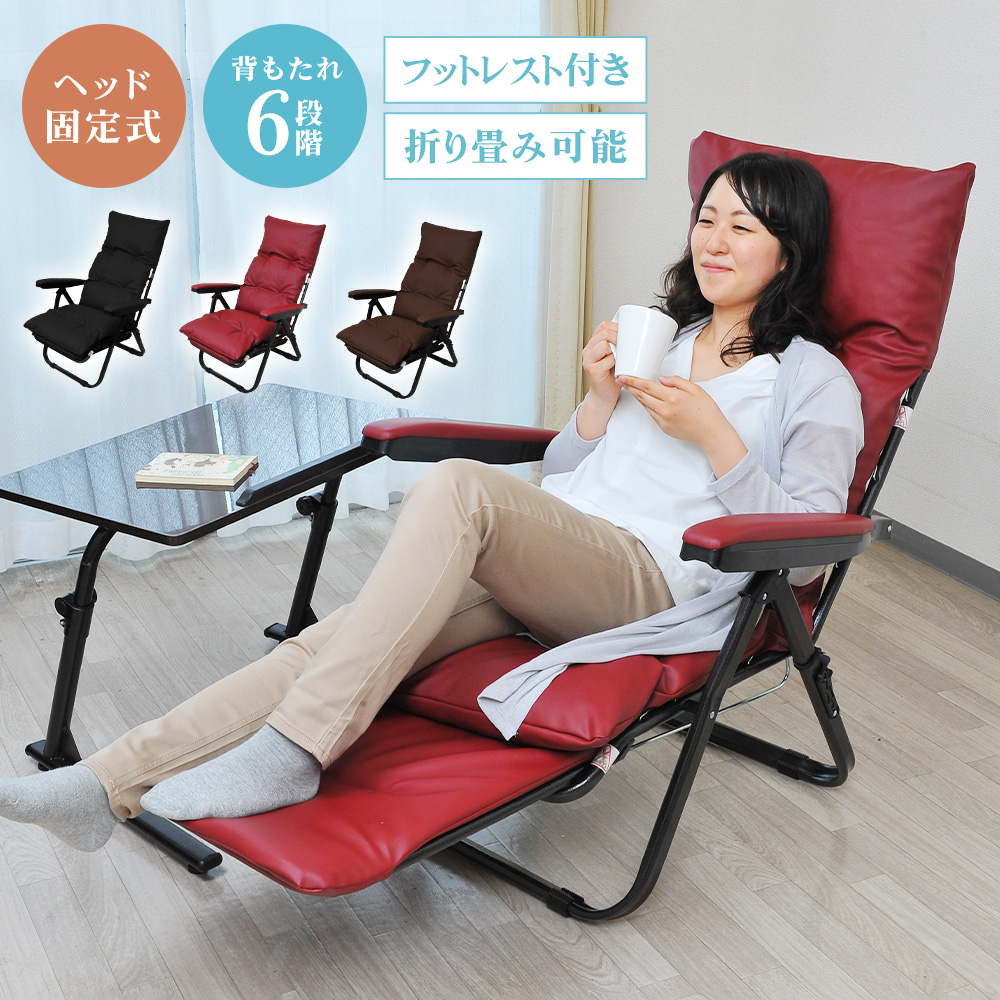リクライニングチェア フットレスト付き 折りたたみ リラックスチェア 肘掛け付き テレワーク PVC パーソナルチェア スライド式フットレスト レザー調