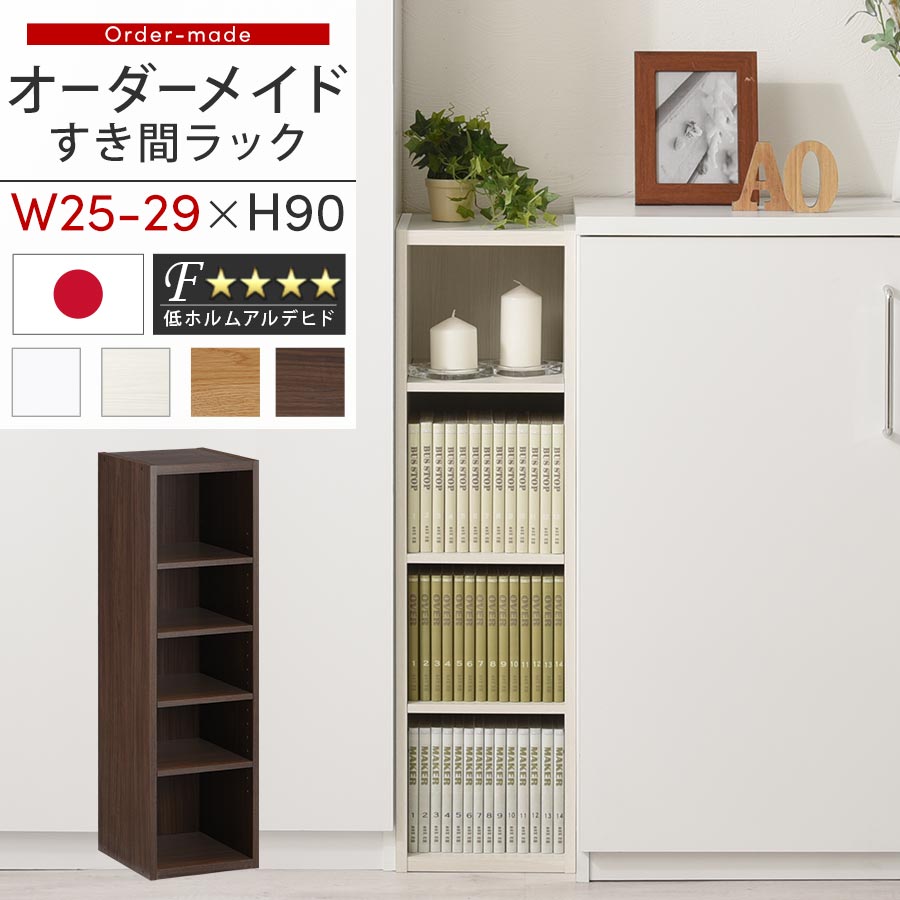 【完成品】 オーダー 本棚 収納 隙間 25〜29cm 収納棚 ロータイプ スリム 木製 おしゃれ 北欧 隙間家具