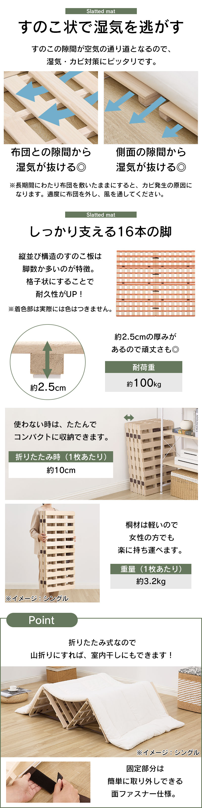 すのこ スノコ 桐すのこ マット すのこマット ベッド すのこベッド 折りたたみベッド ローベッド 桐 天然木桐材 軽量 折りたたみ 折り畳み式 コンパクト 湿気対策 通気性 下に敷く 低ホルムアルデヒド 厚み2.5cm ワンルーム 賃貸 新生活 一人暮らし 来客用 部屋干し 室内干し ナチュラル シンプル おしゃれ 送料無料 新生活 部屋 おしゃれ 爆買 爆買