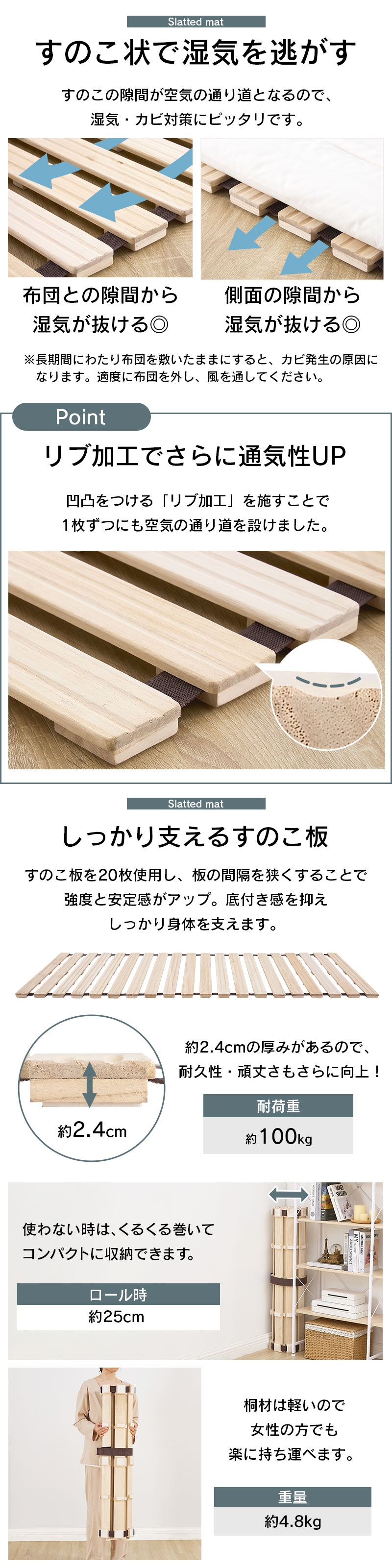 すのこ スノコ 桐すのこ マット すのこマット すのこロールマット ベッド すのこベッド 折りたたみベッド ローベッド 桐 天然木桐材 軽量 折りたたみ ロール式 コンパクト 湿気対策 通気性 下に敷く 低ホルムアルデヒド 厚み2.4cm ワンルーム 賃貸 新生活 一人暮らし 来客用 ナチュラル シンプル おしゃれ 送料無料 新生活 部屋 おしゃれ 爆買 爆買