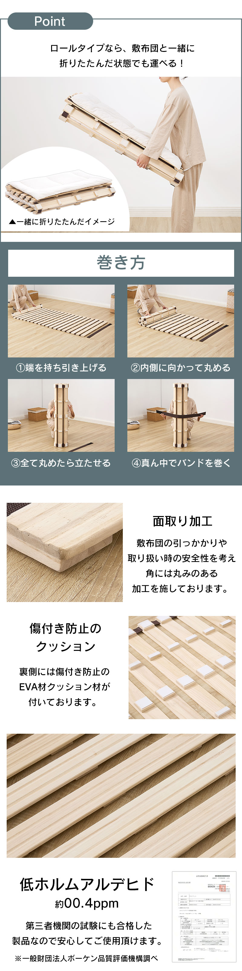 すのこマット ロール式 折りたたみベット 軽量 コンパクト すのこ シングル ローベッド 木製 桐すのこ 湿気対策 来客用 ベッド おしゃれ