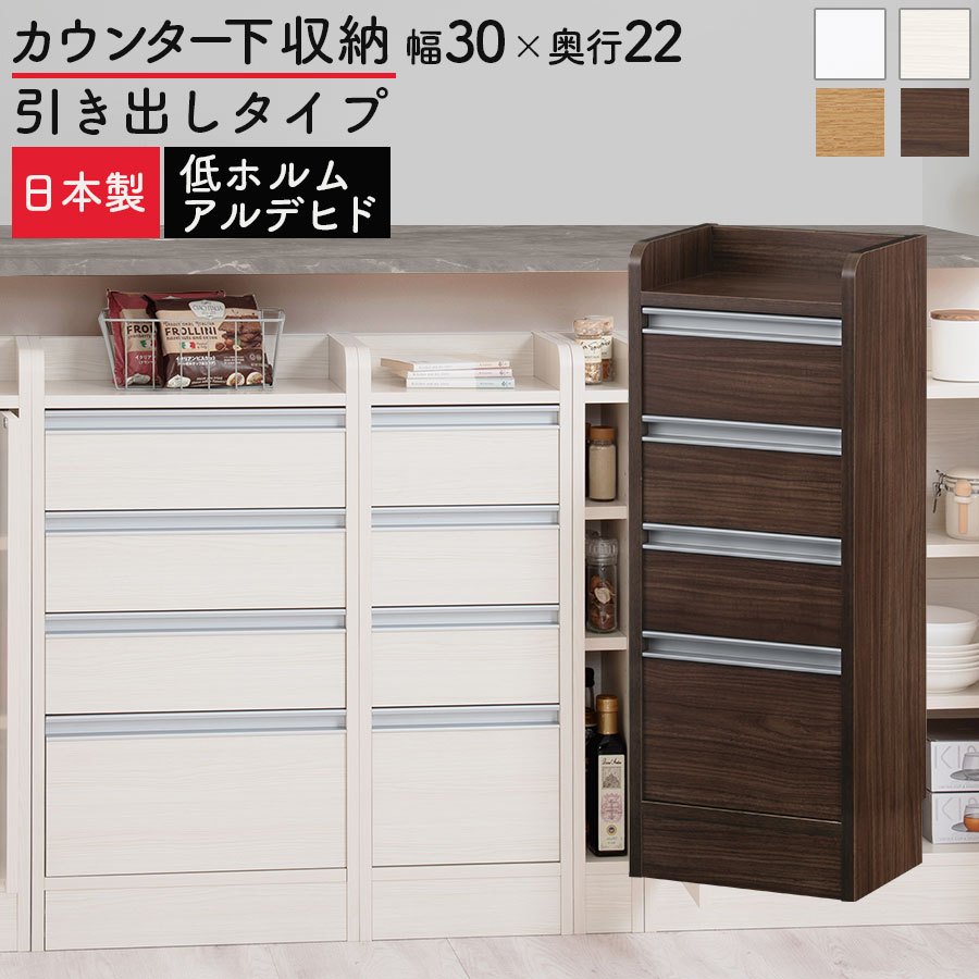 【完成品】 キッチンカウンター カウンター下収納 キッチンボード 食器棚 カウンター下 幅30cm 薄型 おしゃれ 収納 棚 引出し キッチン 収納棚 作業棚 日本製