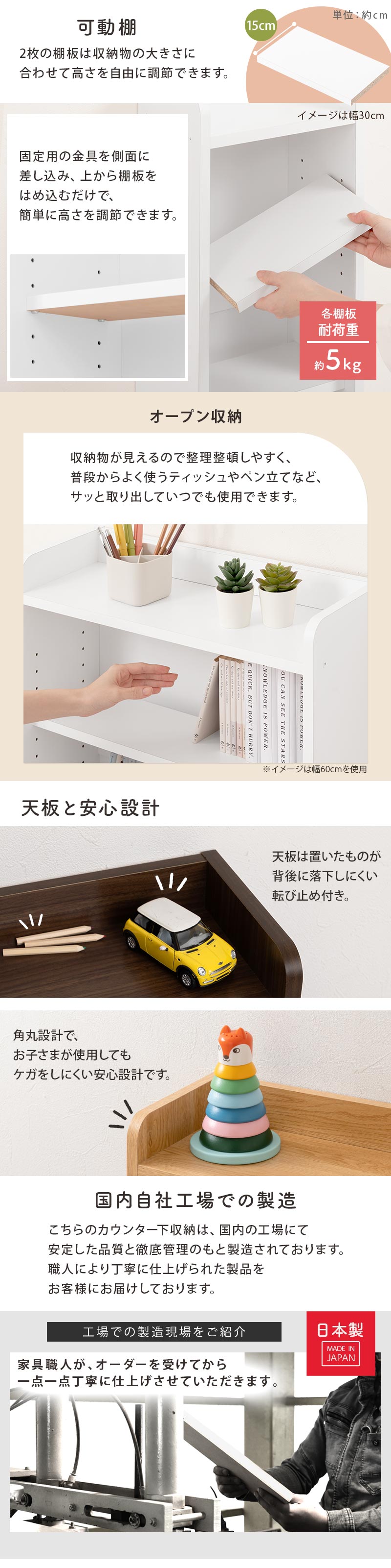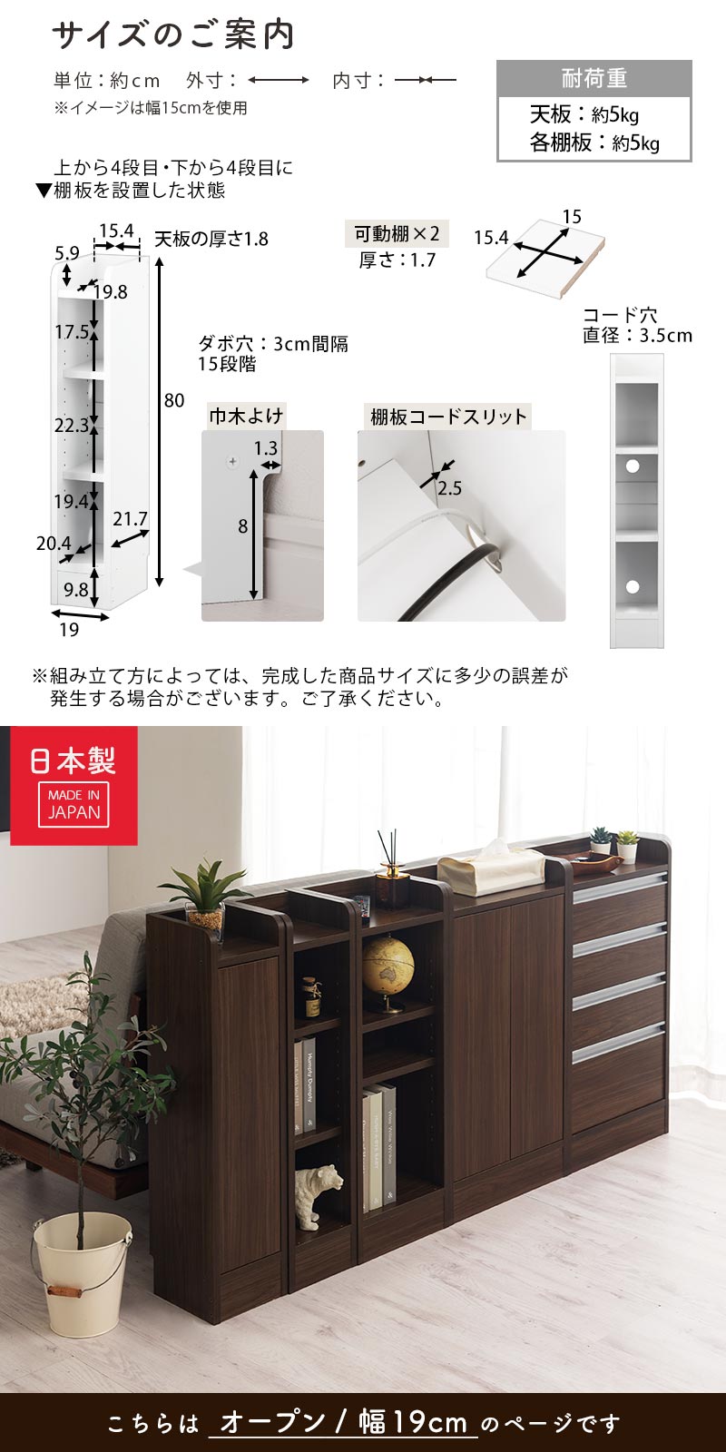 ■耐荷重(天板・各棚板):約5kg