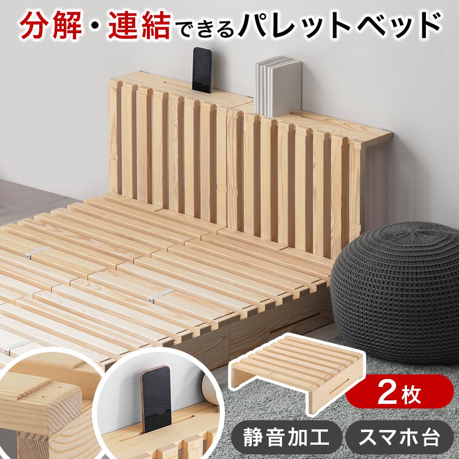 パレットベッド 2枚 バラ売り ベッド 天然木 すのこベッド 連結 ベッドフレーム 宮棚 ひとり暮らし 通気性 ナチュラル シンプル 低め おしゃれ