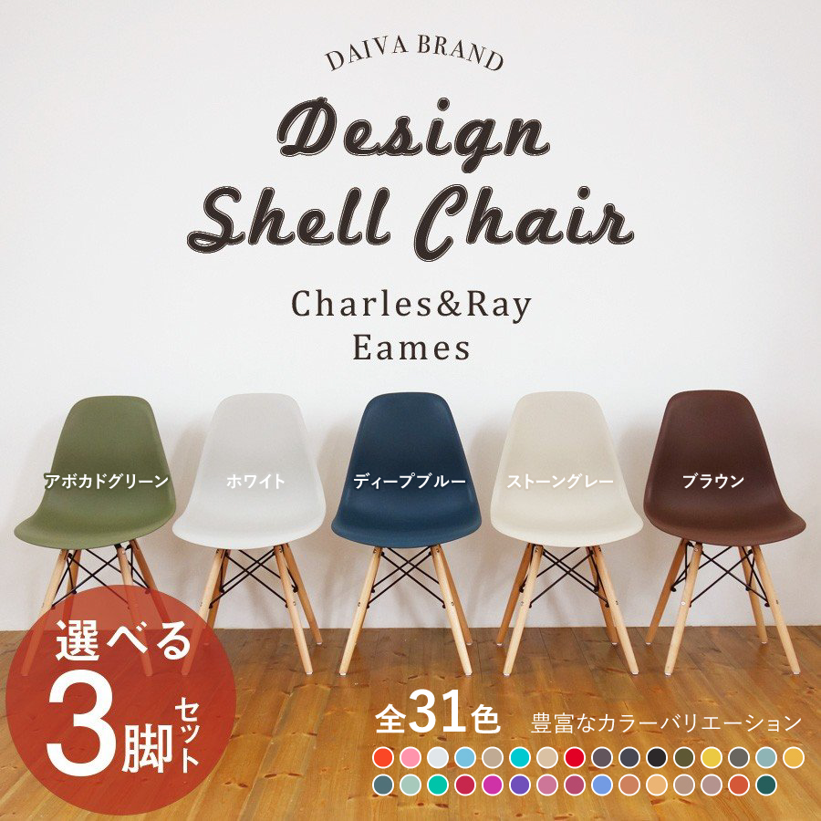 イームズチェア DSWシェルチェア 31色から選べる 3脚セット イス チェア Eames チャールズ&レイ・イームズ
