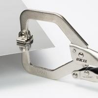 パット付きのためテーパー形状などのクランプに最適です。パネル類の固定や溶接作業に便利です。