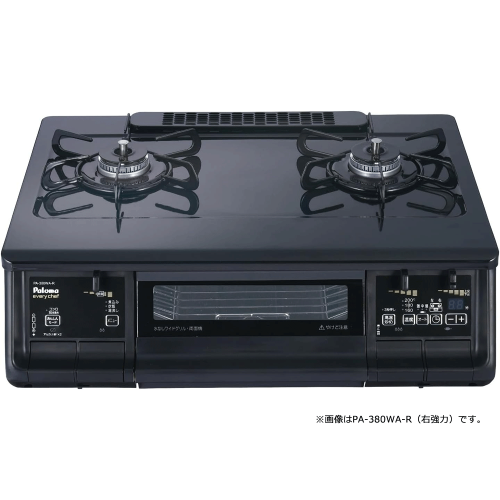 パロマ 据え置きタイプ ガスコンロ 左強火力 エブリシェフ PA-380WA-L LPガス ブラックプラチナ