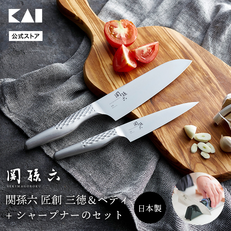 貝印 関孫六 包丁2本&シャープナーセット 匠創 三徳 ペティナイフ ダイヤモンド&セラミックシャープナー