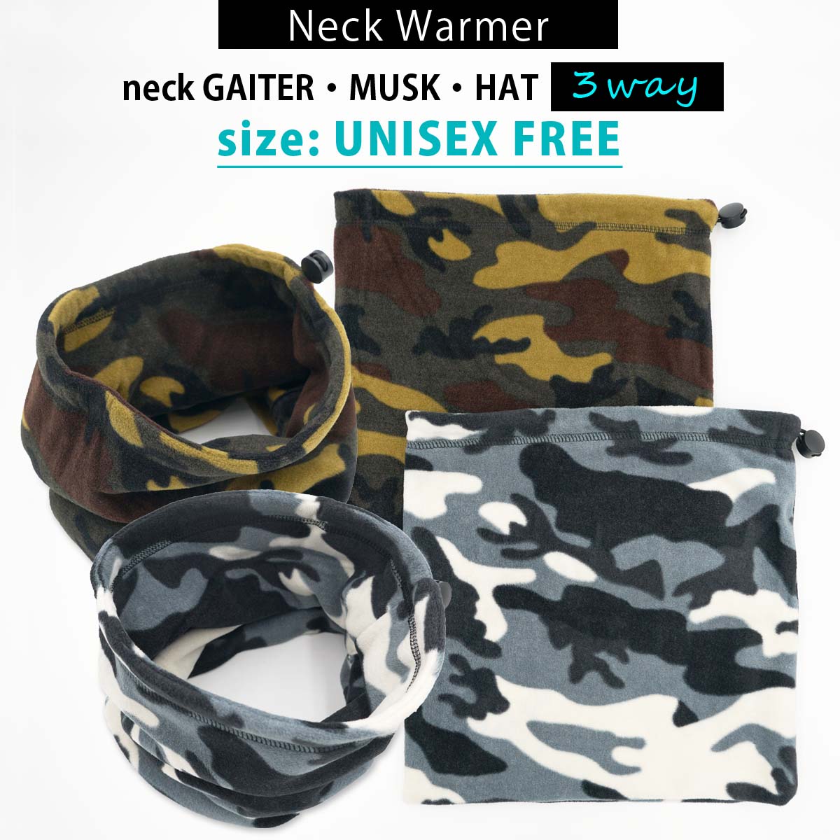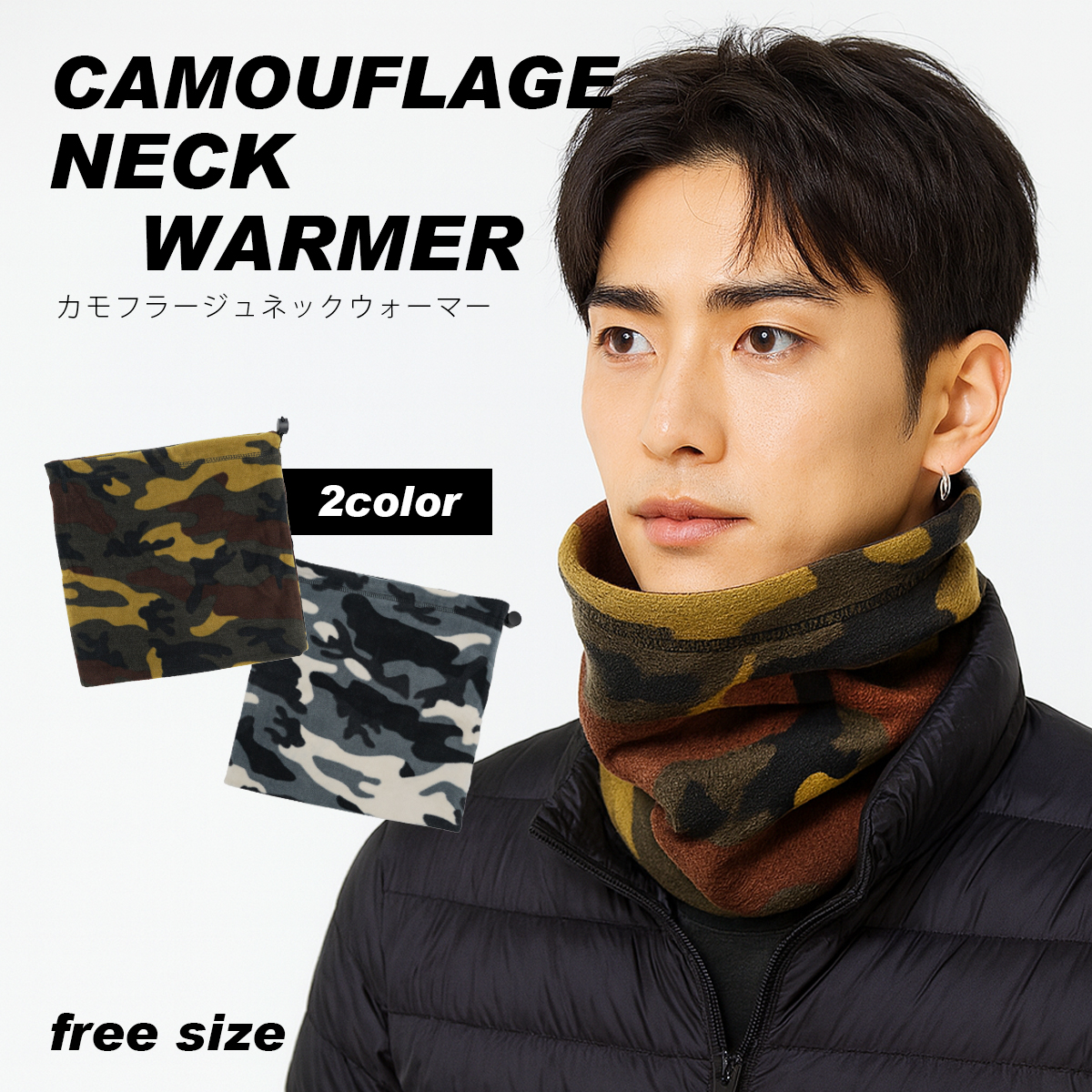 ・体の中で最も寒さを感じる首回りを温めると体全体の血液循環がよくなりポカポカに・2枚重ねのフリースで冬を心地よく暖かく過ごせます・ストッパー付きで3タイプの着こなしが可能・サバイバル定番ウッドランドカモフラージュプリント!室内外問わず様々なシーンで活躍してくれます