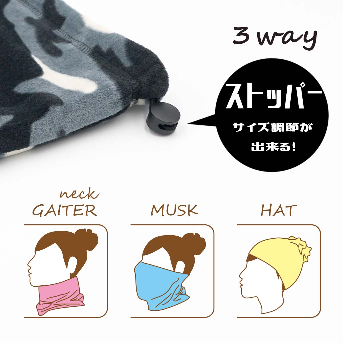 ネックウォーマー メンズ レディース 迷彩柄 カモフラージュ フリース 3WAY バイク 自転車 男女兼用 通勤 通学 暖かい 防寒 防風 ネックガード