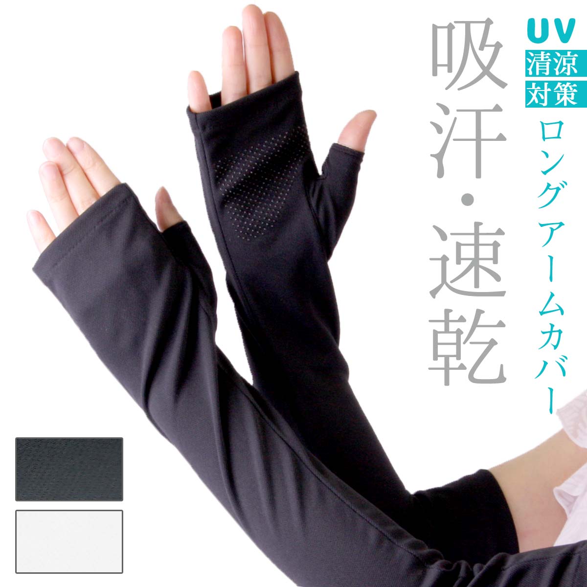 UVカット手袋 アームカバー レディース ロング 指なし 指先フリー すべり止付 吸汗速乾 UV手袋 日焼け止め 肘上ロング