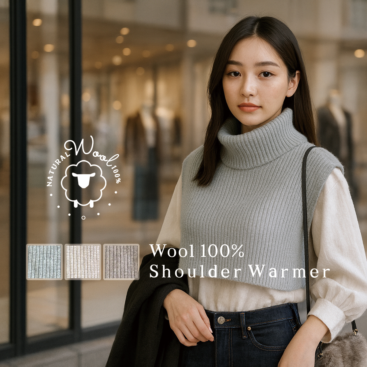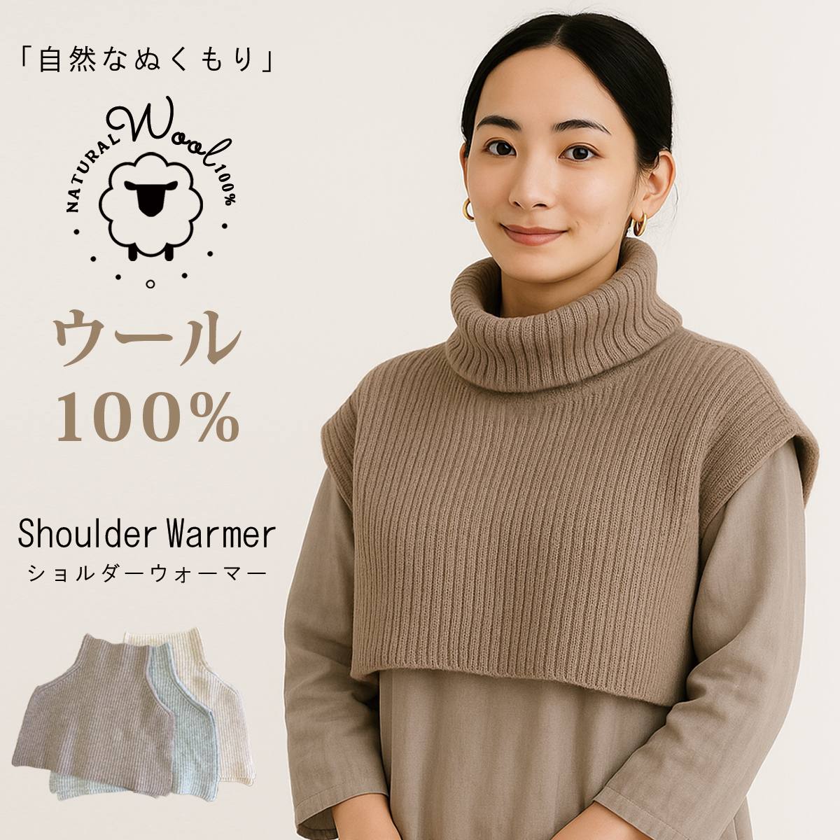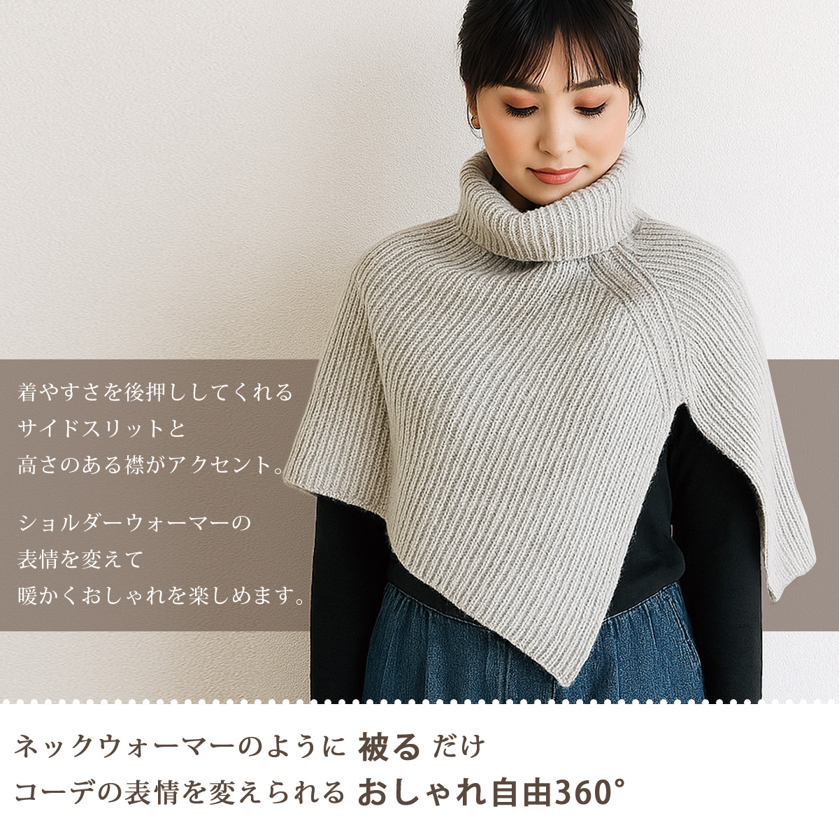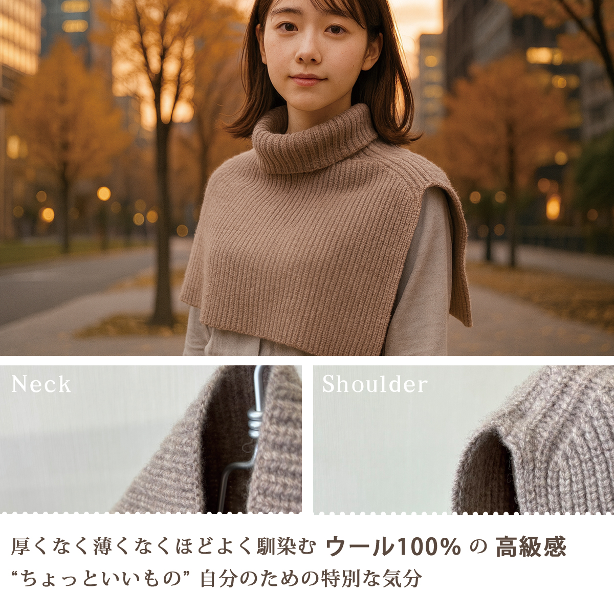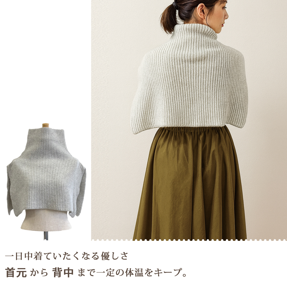 ネックウォーマー ウール ニット ショルダーウォーマー タートルネック ハイネック トップス 温める 冷え対策 寒さ対策 レイヤード 重ね着 防寒