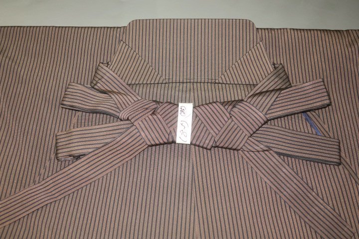 こちらのお品は化繊仙台平調の行灯袴です。色は灰茶のスタンダードな色の縞です。色味が難しいため現物優先でお願いします。