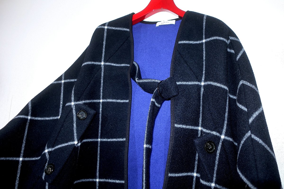 ブラックのシャドウチェックで、ウール85%ナイロン15%の混紡・ハンガリー製のマントです。色味が難しいため現物優先でお願いします。