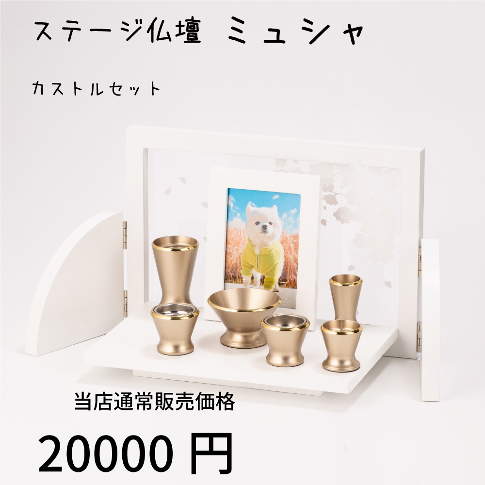 透明なアクリルに桜の花びらが舞い散る可愛らしいステージ仏壇です。