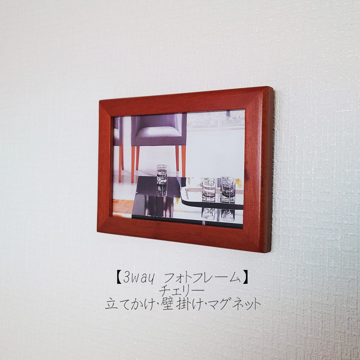 【マグネット内蔵】3way フォトフレーム チェリー