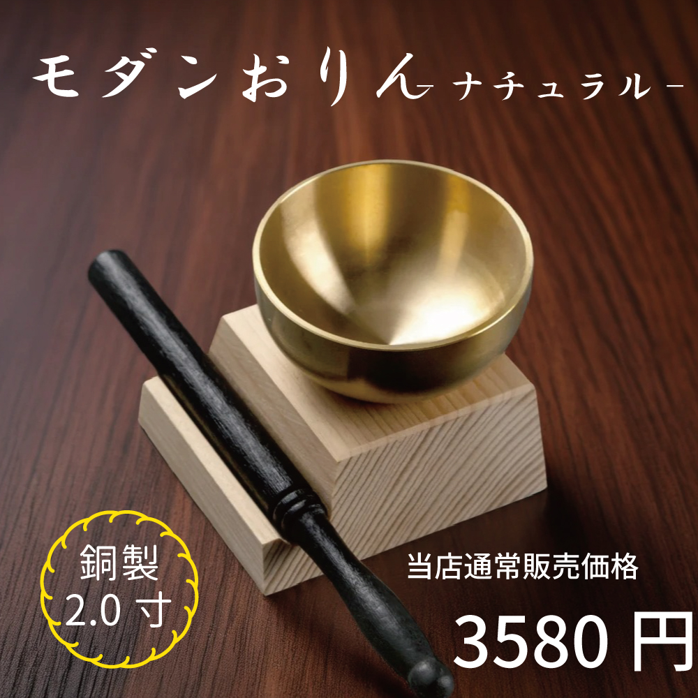 【最強配送対応】仏具 モダンおりん 2.0寸 木製台座 ナチュラル モダン仏具