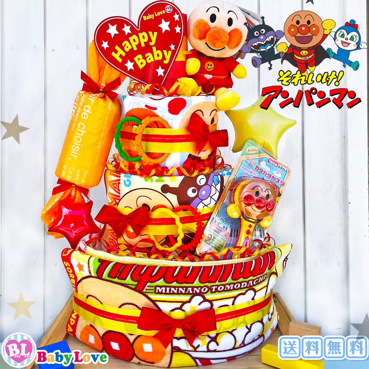 おむつケーキ アンパンマン 出産祝い 男の子 オムツタワー4段 女の子 土曜も営業