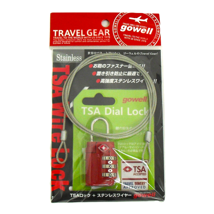 防犯グッズ gowell TSAダイヤルロックGX レッド 1mワイヤー セット メール便可 南京錠 防犯 セキュリティ 盗難 防止 海外 旅行 トラベル スーツケース 鞄 爆買