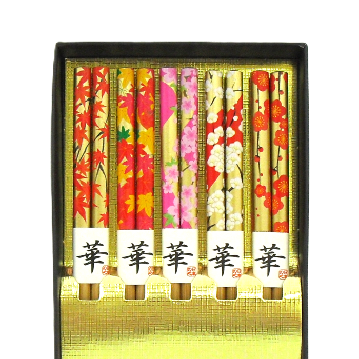 お土産 外国人 喜ぶ 日本 和風 お箸セット 手作り五膳竹箸 華 22.5cm すべり止め加工 化粧箱付 メール便可 爆買