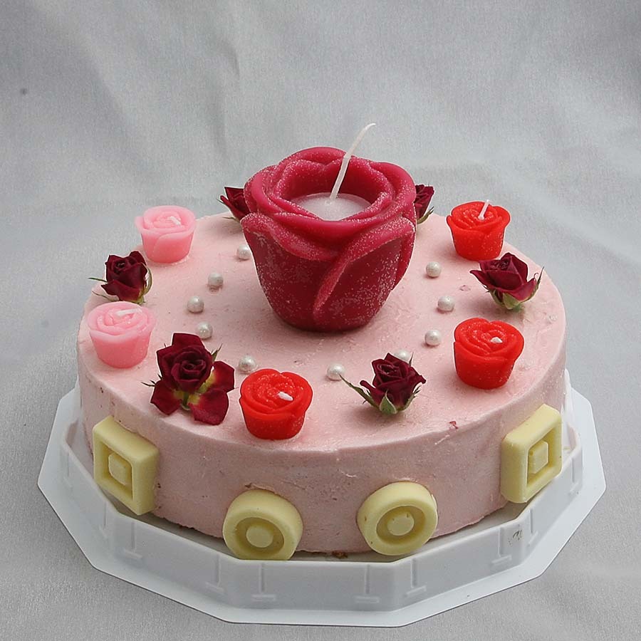 バラのアイスケーキです。美女と野獣で出てきた真っ赤な大きなバラのロウソクを置いてエレガントでゴージャスなアイスケーキに仕立てました。アイスのお味はもちろんバラのアイスでこれはまた格別においしく仕上がっております。ぜひご賞味ください。