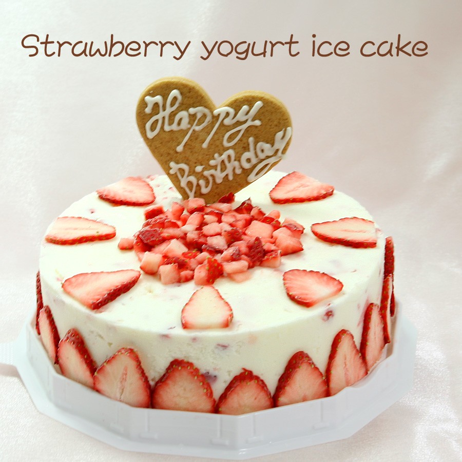 苺がたっぷり入ったヨーグルトのアイスケーキです。大きさは6号直径18cmの大きさで約6人〜8人分お召し上がりになることができます。